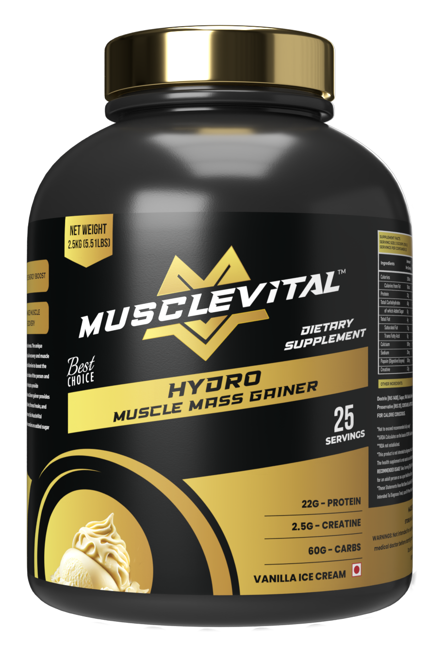 Warrior Nutrition Hydro Muscle Mass Gainer is a perfect gainer to gain muscle mass. The unique blend of protein and clean carbs provides the fuel to the muscles for quick recovery and muscle synthesis. Warrior Nutrition Hydro also contains a blend of minerals and multivitamins to boost the body's workout performance and it also supports the increased caloric intake of the person and provides the body with the required fats, carbs, and lean proteins and helps to provide advanced muscle-building goals. Each serving of this Hydro Muscle Mass Gainer gainer provides 22 grams of protein to fulfill the nutritional requirements for bodybuilders, fitness freaks, and people who are seeking muscle recovery and development. Furthermore, this Warrior Nutrition Hydro Muscle Mass Gainer comes from clean sources. This formulation contains no added sugar or trans-fat.